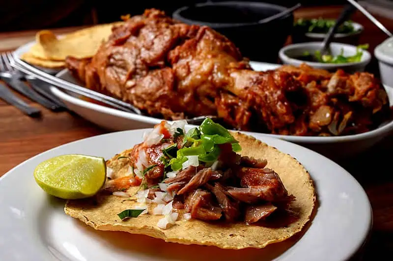Pero si hablamos de generosidad en el plato, el cachopo asturiano se lleva los aplausos: carne empanizada rellena de jamón y queso, de esos que te hacen reconsiderar la dieta hasta nuevo aviso. Y claro, la joya de la corona: el chamorro al horno. Dorado, jugoso, con una capa crujiente que protege una carne que prácticamente se deshace al mirarla. El sabor es profundo, como si cada bocado tuviera una historia que contar, y no es exageración decir que este plato merece el viaje por sí solo.